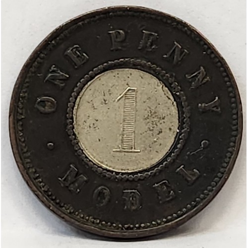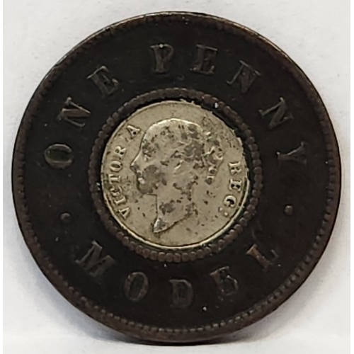 Great Britain UK 1844 Model Penny. Queen Victoria Token. Bi-Metal