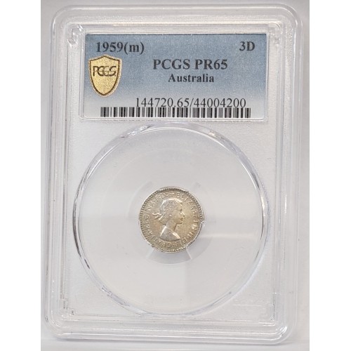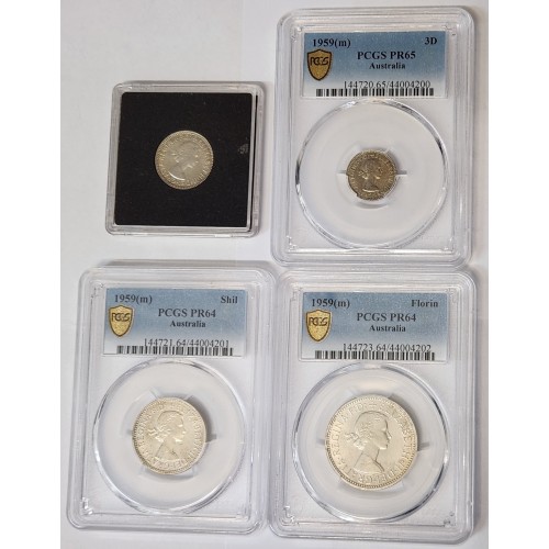 Australia 1959 Proof Set. Threepence, Shilling, Florin PCGS Slabbed. Not the