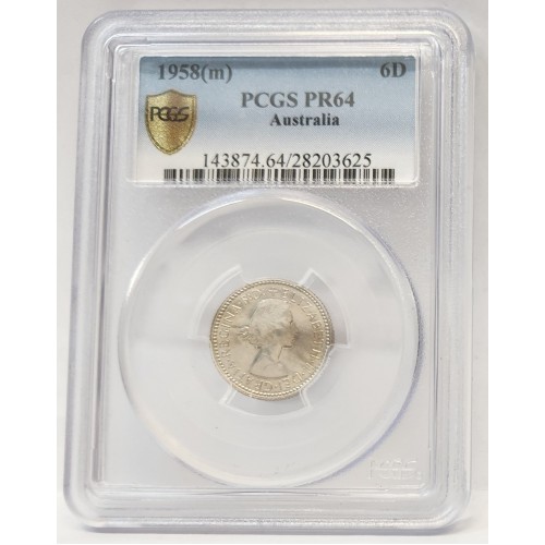 Australia 1958M Sixpence. Proof. PCGS PR64. Very Scarce Date. Gem.