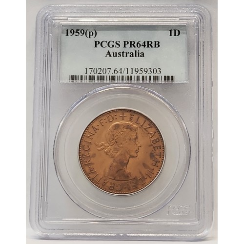 Australia 1959 One 1 Penny. Proof. PCGS PR64RB. Rare this High Grade.