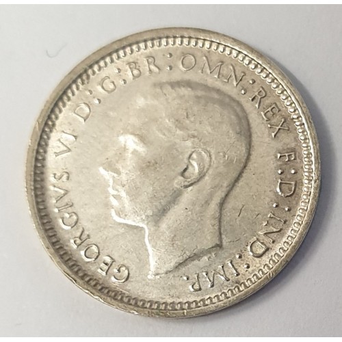 Australia 1947 Threepence. Variety. Large Die Crack on "P" in  Pence. Low