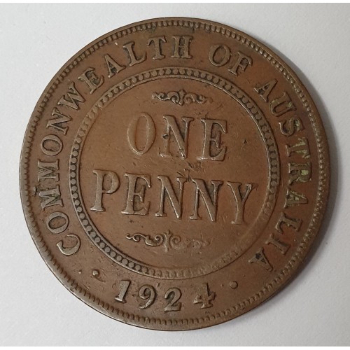 Australia 1924 One 1 Penny. Variety. Rotated 2 O'Clock on Obverse. Extra Fine