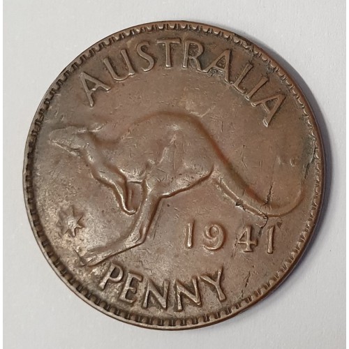 AUSTRALIA 1941 . ONE 1 PENNY . VARIETY . DIE CRACKS