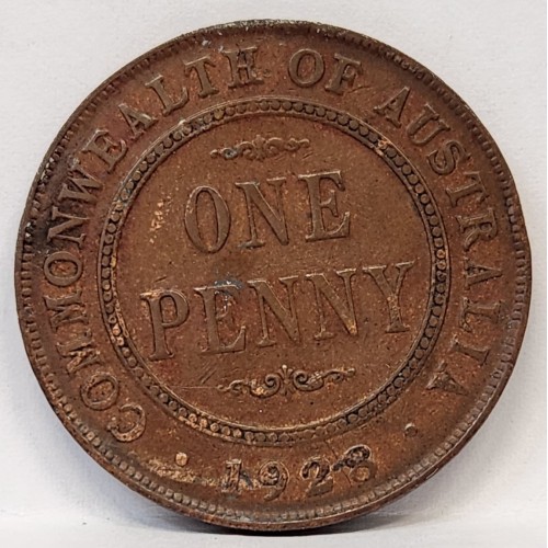 Australia 1928 One 1 Penny. Variety. Die Cracks. Broken 8.