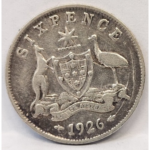 Australia 1926 Sixpence. Variety. Major Die Cracks on the Reverse.