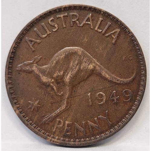 Australia 1949 One 1 Penny. Variety. Die Cracks on Both sides of Flan.