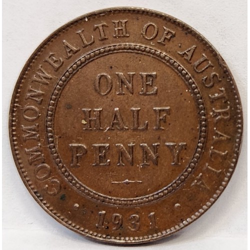 AUSTRALIA 1931 . HALF 1/2 PENNY . VARIETY . DROPPED 1