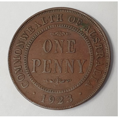 Australia 1923 One 1 Penny. Variety. Broken M in IMP. Rare Type.Fine