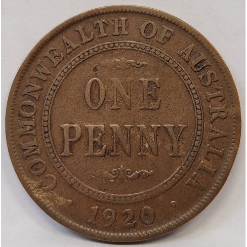 Australia 1920 One 1 Penny. Variety. Double Dot. Very Scarce