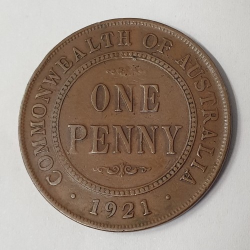 Australia 1921 One 1 Penny. Variety. London Die. Rare. 8 Pearls. aExtra Fine