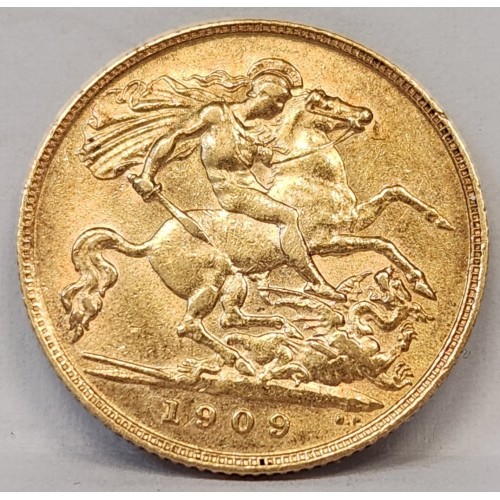 GREAT BRITAIN UK 1909 . HALF 1/2 SOVEREIGN . GOLD COIN