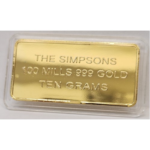 The Simpsons One Hundred 100 Mills. Gold Ingot Bar. Gold Plated. 10grams
