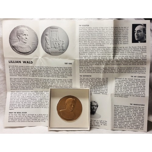 Hall of Fame Medal. Lillian D. Wald. Very Scarce. Brinze. Comes complete with