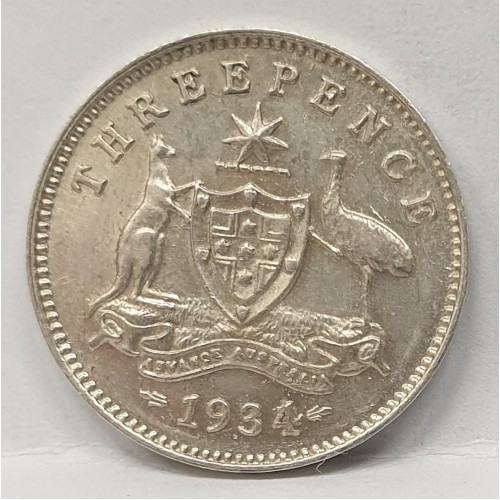 Australia 1934/3 Threepence. Supreme Overdate. Full 8 Pearls. Full Centre