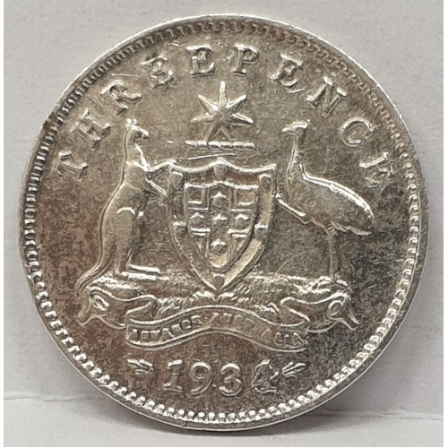 Australia 1934/3 Threepence. Variety. Overdate. Scarce. High Grade.