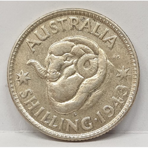 Australia 1943 One 1 Shilling. Variety. 'S' over 'D'. Rare. Hard to Find.