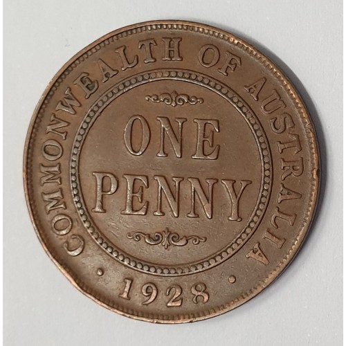 Australia 1928M One 1 Penny. Variety. Broken 8. Extra Fine