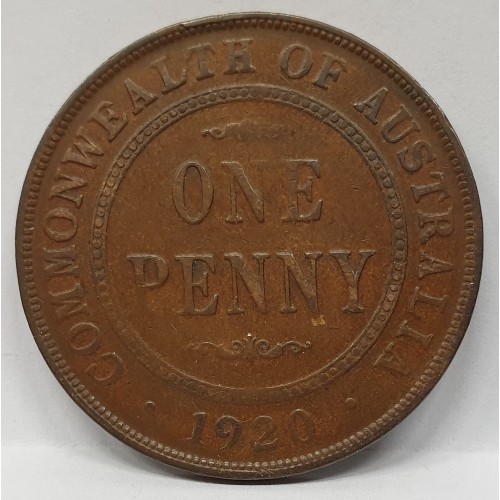 Australia 1920 One 1 Penny. Variety. Top Dot Only. Rare. 6 Pearls. Very Fine+