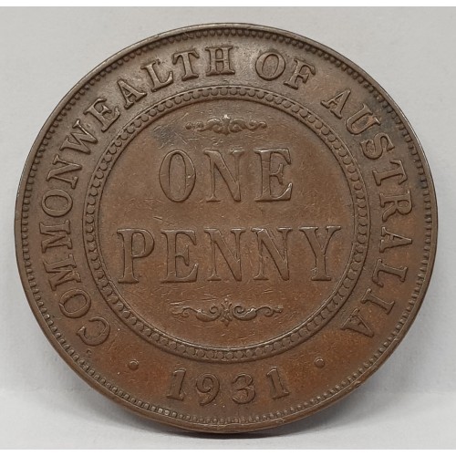 Australia 1931 One 1 Penny. Variety. Curved Base Letters. Indian Die.