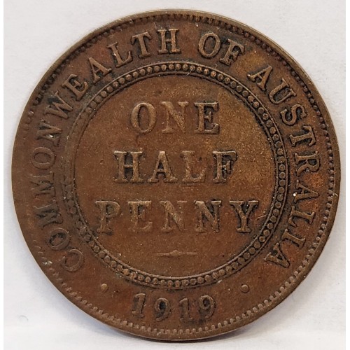 Australia 1919 Half 1/2 Penny. Variety. Major Oil Filled Die. Great for Collectors