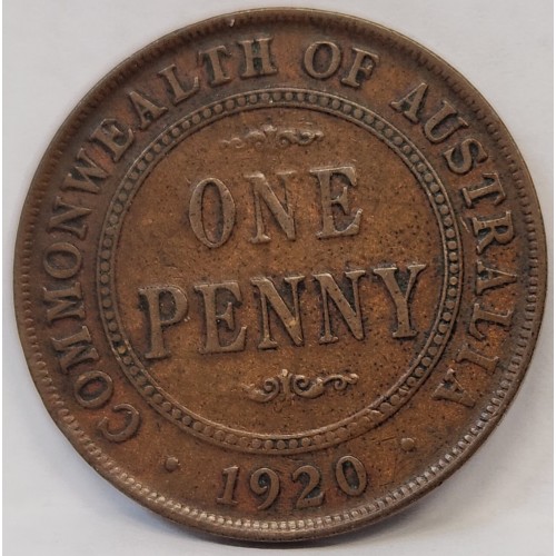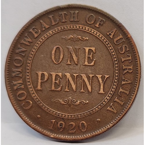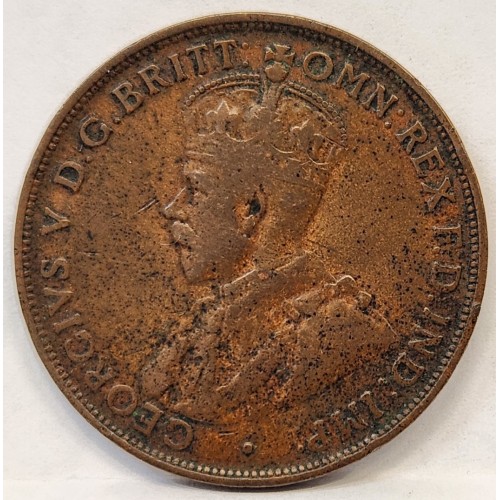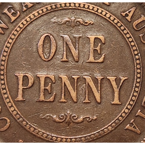 Australia 1920 One 1 Penny. Variety. Double Dot. 6 Pearls. Part Centre Diamond.