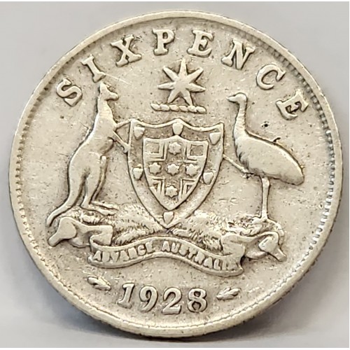 Australia 1928 Sixpence. Variety. Broken 8. Rare. Hard to Find.