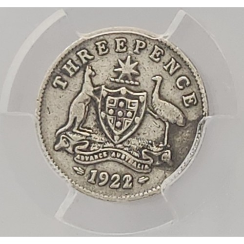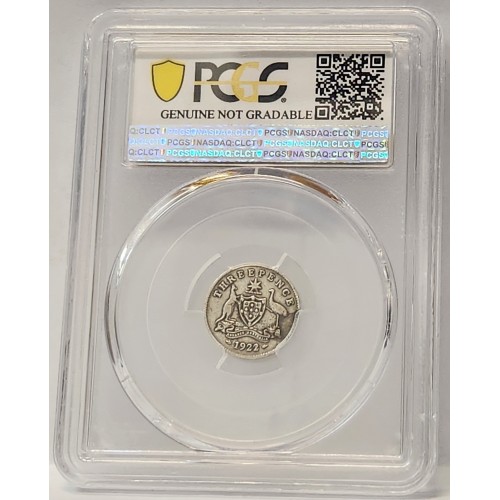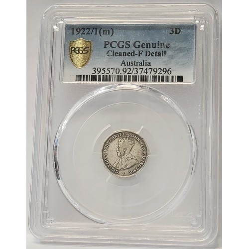 Australia 1922/1 Threepence. Variety. Overdate. Genuine. PCGS F Detail. Low