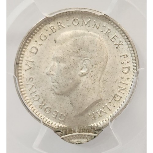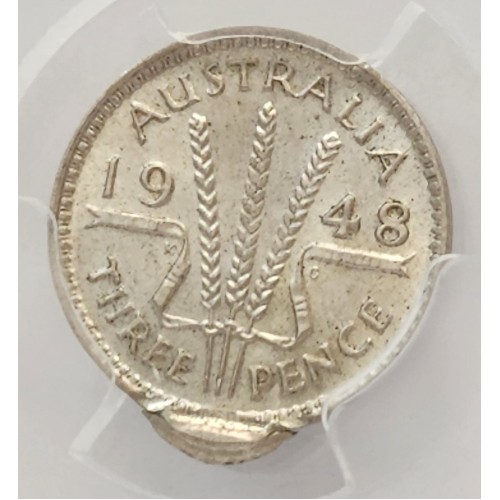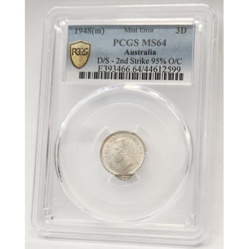 Australia 1948 Threepence. Error. Double Strike. Second Strike 95% O/C. Rare