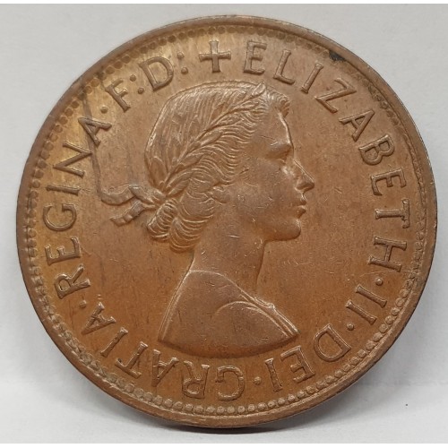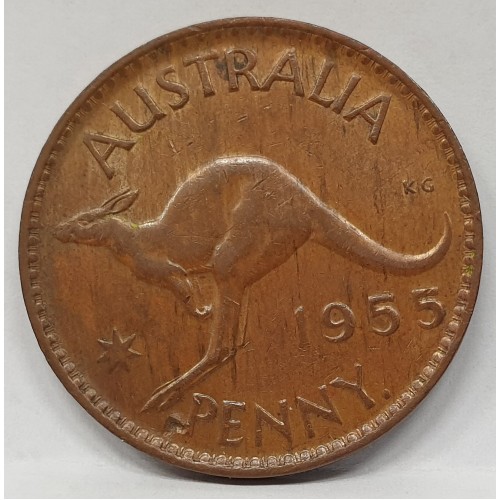 AUSTRALIA 1955Y. ONE 1 PENNY . ERROR/VARIETY . WIDE DATE . PLANCHET FLAW