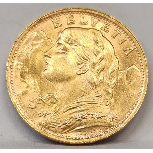 Switzerland 1935 B Twenty 20 Francs. Gold Coin. Beautiful Uncirculated.