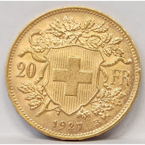 SWITZERLAND 1927 B . TWENTY 20 FRANCS . GOLD COIN