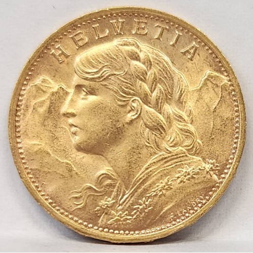 Switzerland 1927 B Twenty 20 Francs. Gold Coin. Beautiful Uncirculated