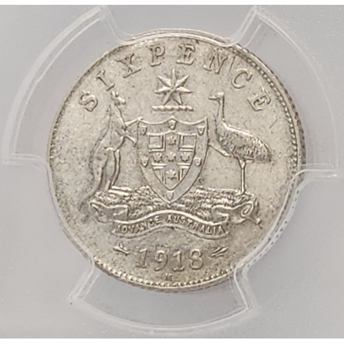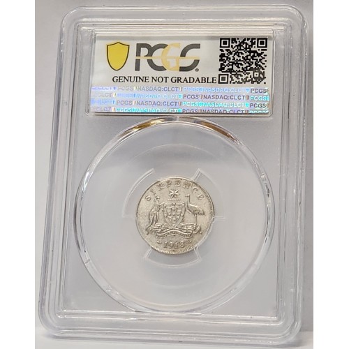 Australia 1918 Sixpence. PCGS Genuine. Key Date. Low Mintage. 8 Pearls. Full