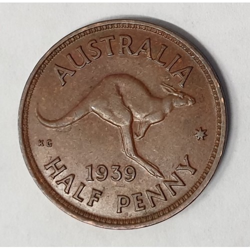 AUSTRALIA 1939 . HALF 1/2 PENNY . ROO . KEY DATE . VERY SCARCE