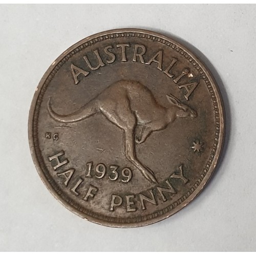 AUSTRALIA 1939 . HALF 1/2 PENNY . ROO . KEY DATE . VERY SCARCE