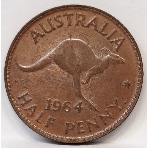 Australia 1964 Half 1/2 Penny. High Grade Lustre. Gem Uncirculated