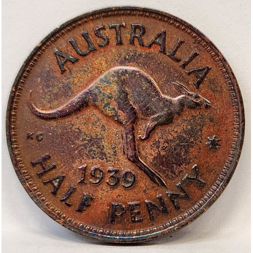 Australia 1939 Half 1/2 Penny. Roo. Minor Rust on Face. Low Mintage. Key Date.