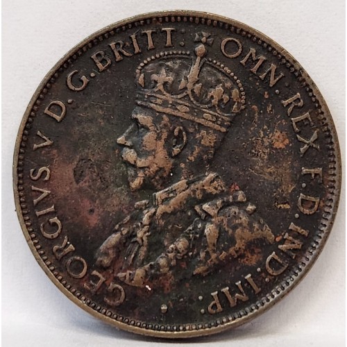 Australia 1931 Half 1/2 Penny. Retone. 8 Pearls. Key Date. Very Low Mintage.