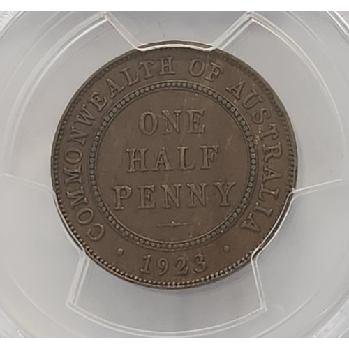 Australia 1923 Half 1/2 Penny. PCGS AU53. Rare. Key Date. Low Mintage.
