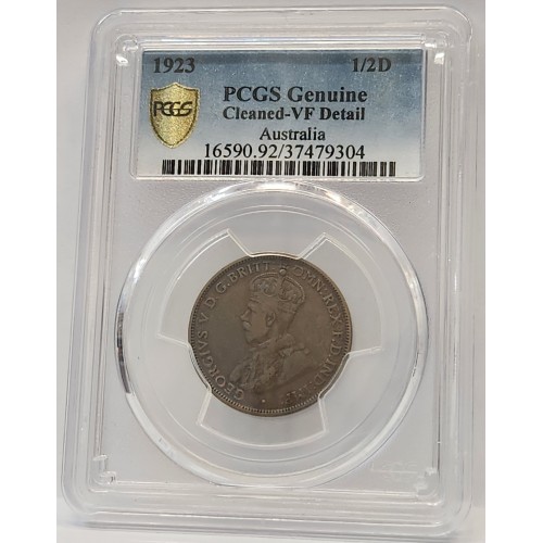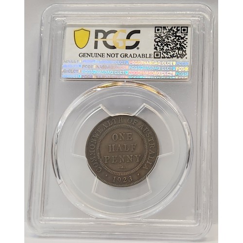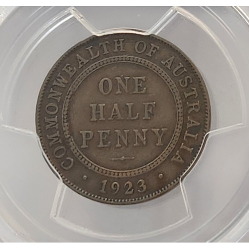 Australia 1923 Half 1/2 Penny. Genuine. PCGS Graded. Rare. Key Date. Low