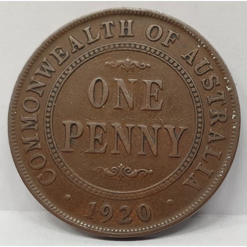 AUSTRALIA 1920 . ONE 1 PENNY . DOUBLE DOT . VERY VISIBLE DOTS