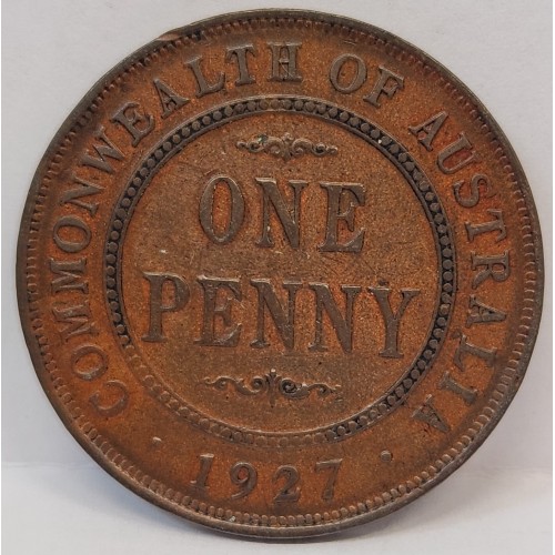 Australia 1927 One 1 Penny. 8 Pearls. 7th/8th Fused. Centre Diamond.
