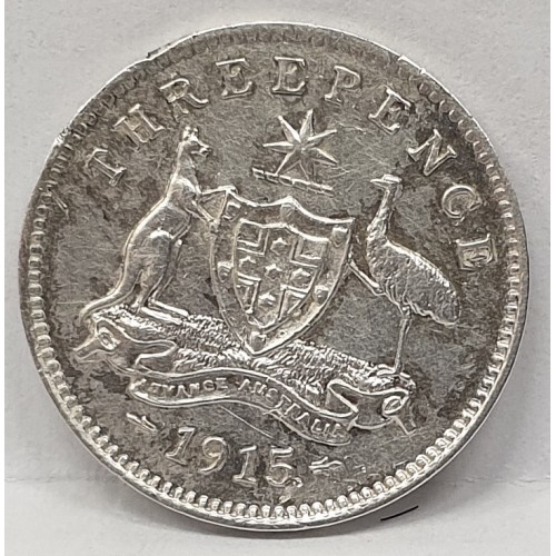 Australia 1915 Threepence. Extremely Scarce Grade for this Dated Coin.