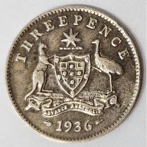 Australia 1936 Threepence. 8 Pearls. Excellent High Grade. Excellent Collectable