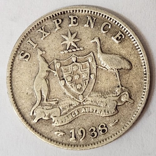 Australia 1938 Sixpence. Very Scarce. Nice Tone. Low Mintage. High Book Value.