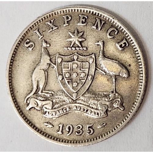 Australia 1935 Sixpence. Rare Date. Key Date. High Book Value. Low Mintage.