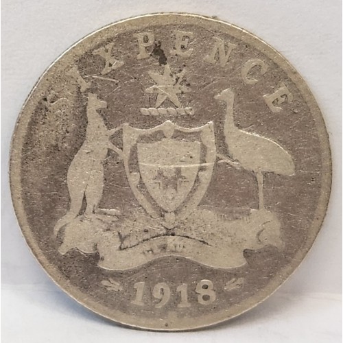 Australia 1918 Sixpence. Thick Rim. 4 Pearls. Rare Key Date. High Book Value