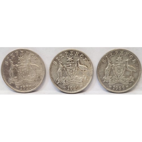 Australia 1925, 1939, 1959 Sixpences. Extremely Collectable. Scarce. High
