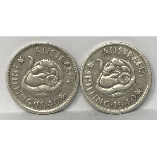 Australia 1940 One 1 Shilling. 2 Coins. Key Date. Better Grade than Most. Very