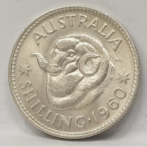 Australia 1960 Shilling. Full Lustre. A Couple of Spots. Uncirculated Condition